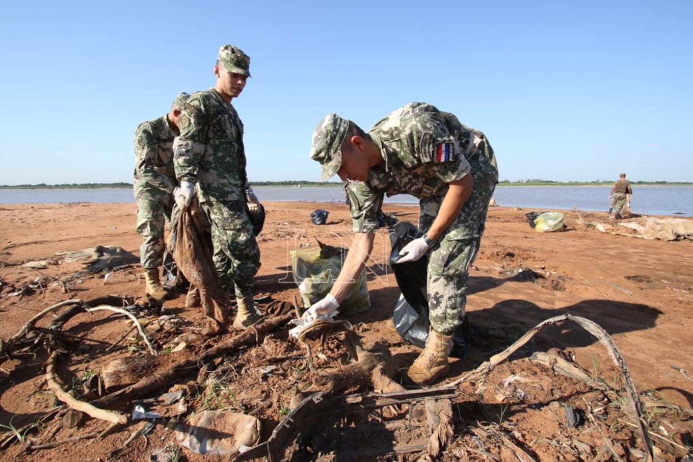Por disposición del presidente de la República, Mario Abdo Benítez, las Fuerzas Armadas de la Nación también participan de la limpieza de las diferentes riberas aprovechando la bajada del río.