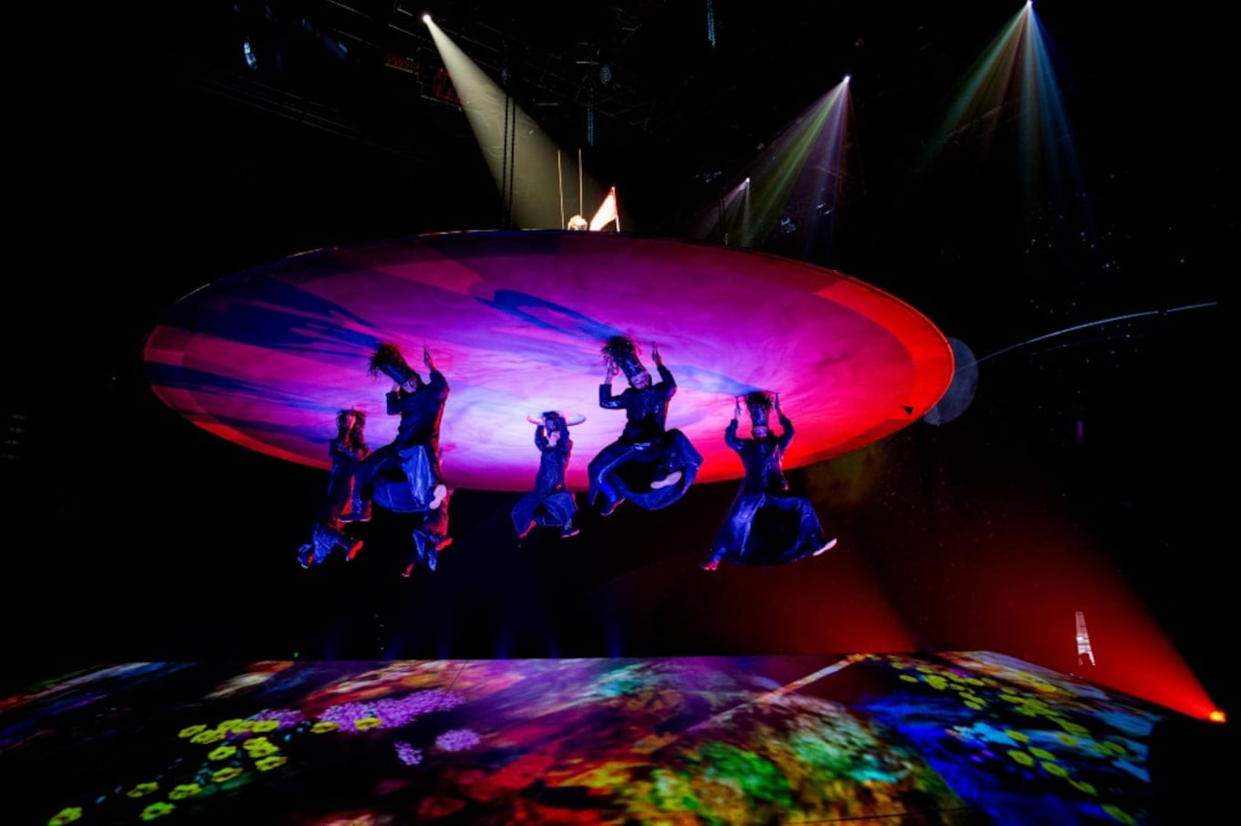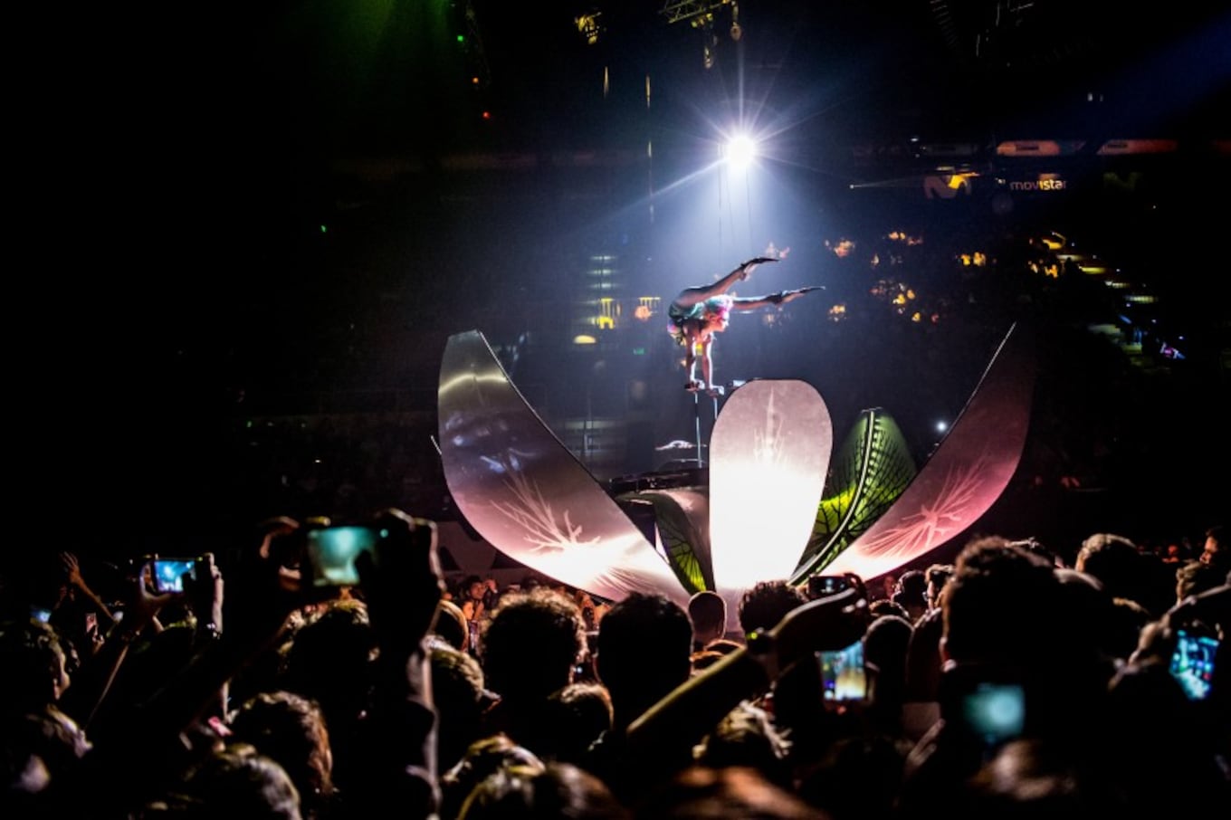 Hay muchos elementos del show que llevan el sello "primera vez", como la interacción del público que se encuentra en el sector "campo de pie" con los artistas; una temática a la que Cirque Du Soleil no estaba acostumbrada (ya que siempre sus espectáculos son en carpa y con el auditorio en 360). Para Remolinos y Signos, se veían personas abriendo paso de un lado a otro; mientras un acto de equilibrio en una flor inmensa y una rueda giratoria, sujetaban, respectivamente, a quienes transformaban las letras de ambas canciones en arte abstracto.